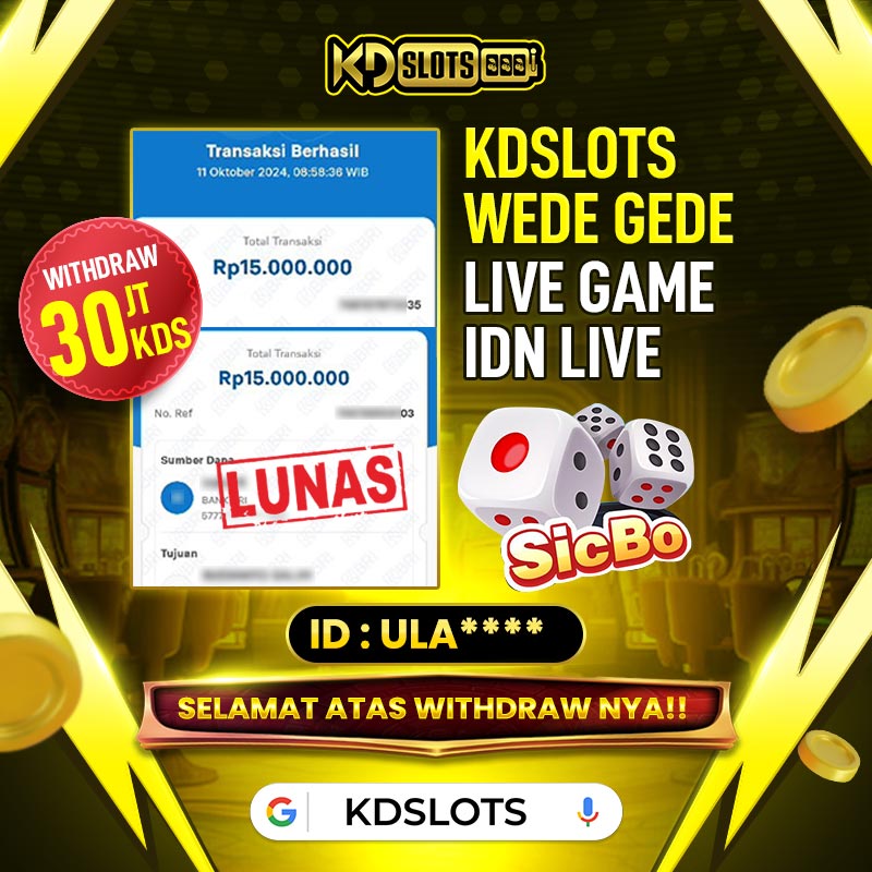 Selamat kepada member KDSLOTS yang bermain game sicbo dice idnlive user id ULA**** Telah berhasil mendapatkan kemenangan sebesar Rp 30.000.000,- Setelah mengisi formulir withdraw dengan kurung waktu hanya 5 – 10 menit pihak KDslots sudah melakukan transfer kepada pemilik User ID dan dana sudah dapat di cairkan oleh pemenang. Bukti pembayaran yang kami berikan merupakan bukti pembayaran yang SAH / VALID yang langung di dapatkan melaui tanda transfer transaksi dari Bank yang dituju.