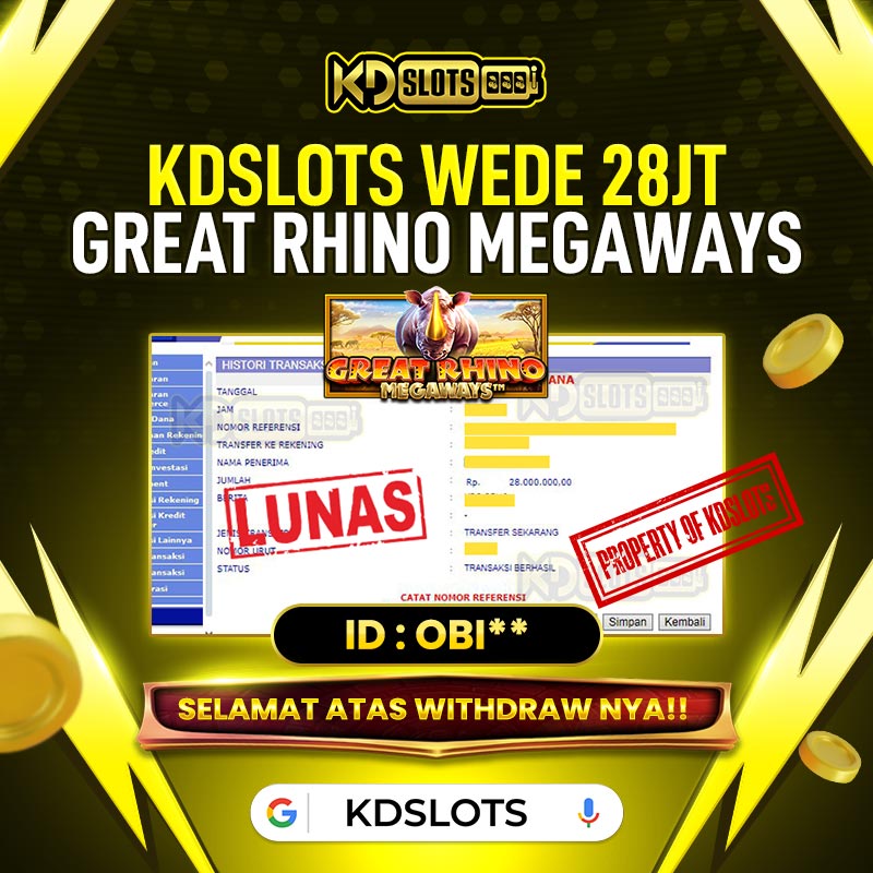 Selamat kepada member KDSLOTS Great Rhino Megaways user id OBI** Telah berhasil mendapatkan kemenangan sebesar Rp 28.000.000 Setelah mengisi formulir withdraw dengan kurung waktu hanya 5 – 10 menit pihak KDslots sudah melakukan transfer kepada pemilik User ID dan dana sudah dapat di cairkan oleh pemenang. Bukti pembayaran yang kami berikan merupakan bukti pembayaran yang SAH / VALID yang langung di dapatkan melaui tanda transfer transaksi dari Bank yang dituju.