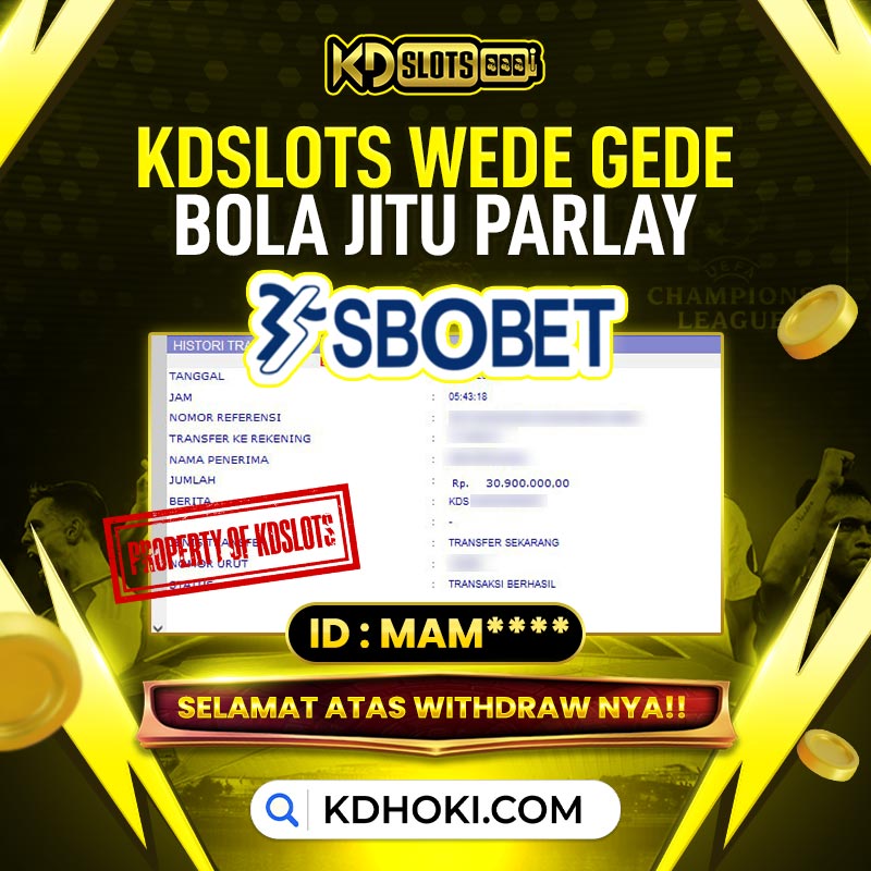Selamat kepada member KDSLOTS game OU, HDP (SBO SPORT) user id MAM**** Telah berhasil mendapatkan kemenangan sebesar Rp 30.900.000 Setelah mengisi formulir withdraw dengan kurung waktu hanya 5 – 10 menit pihak KDslots sudah melakukan transfer kepada pemilik User ID dan dana sudah dapat di cairkan oleh pemenang. Bukti pembayaran yang kami berikan merupakan bukti pembayaran yang SAH / VALID yang langsung di dapatkan melalui tanda transfer transaksi dari Bank yang dituju