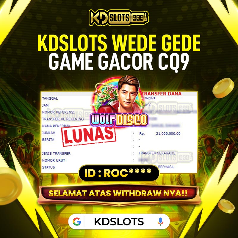 Selamat kepada member KDSLOTS WOLF DISCO user id ROC**** Telah berhasil mendapatkan kemenangan sebesar Rp 21.000.000 Setelah mengisi formulir withdraw dengan kurung waktu hanya 5 – 10 menit pihak KDslots sudah melakukan transfer kepada pemilik User ID dan dana sudah dapat di cairkan oleh pemenang. Bukti pembayaran yang kami berikan merupakan bukti pembayaran yang SAH / VALID yang langung di dapatkan melaui tanda transfer transaksi dari Bank yang dituju.