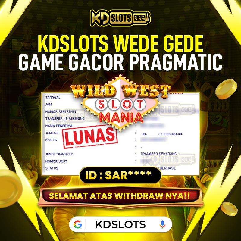 Selamat kepada member KDSLOTS WILD WEST SLOTS MANIA user ID SAR**** Telah berhasil mendapatkan kemenangan sebesar Rp 23.000.000 Setelah mengisi formulir withdraw dengan kurung waktu hanya 5 – 10 menit pihak KDslots sudah melakukan transfer kepada pemilik User ID dan dana sudah dapat di cairkan oleh pemenang. Bukti pembayaran yang kami berikan merupakan bukti pembayaran yang SAH / VALID yang langung di dapatkan melaui tanda transfer transaksi dari Bank yang dituju.