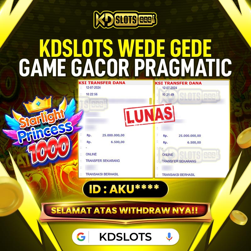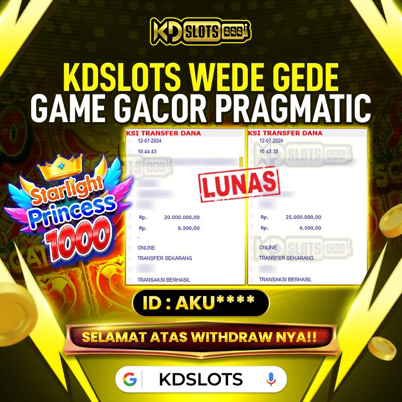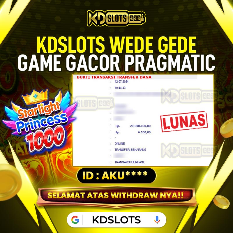 Selamat kepada member KDSLOTS STARLIGHT PRINCESS 1000 user ID AKU**** Telah berhasil mendapatkan kemenangan sebesar Rp 170.000.000 Setelah mengisi formulir withdraw dengan kurung waktu hanya 5 – 10 menit pihak KDslots sudah melakukan transfer kepada pemilik User ID dan dana sudah dapat di cairkan oleh pemenang. Bukti pembayaran yang kami berikan merupakan bukti pembayaran yang SAH / VALID yang langung di dapatkan melaui tanda transfer transaksi dari Bank yang dituju.