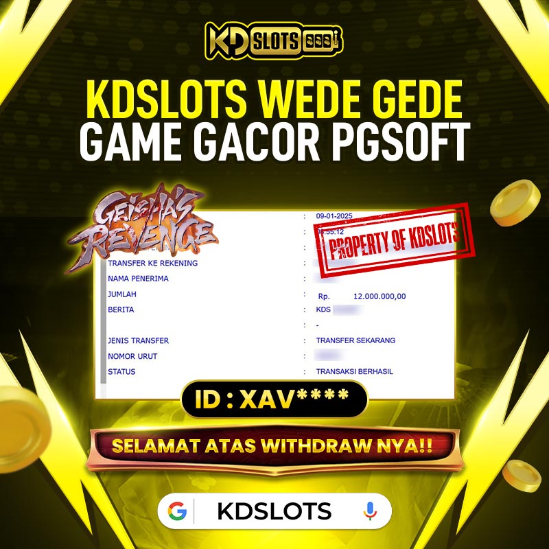 Selamat kepada member KDSLOTS Geisha’s Revenge user id XAV**** Telah berhasil mendapatkan kemenangan sebesar Rp 12.000.000 Setelah mengisi formulir withdraw dengan kurung waktu hanya 5 – 10 menit pihak KDslots sudah melakukan transfer kepada pemilik User ID dan dana sudah dapat di cairkan oleh pemenang. Bukti pembayaran yang kami berikan merupakan bukti pembayaran yang SAH / VALID yang langsung di dapatkan melalui tanda transfer transaksi dari Bank yang dituju.