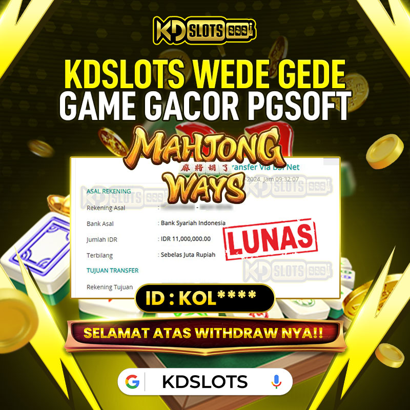 Selamat kepada member KDSLOTS Mahjong Ways user id KOL**** Telah berhasil mendapatkan kemenangan sebesar Rp 11.000.000 Setelah mengisi formulir withdraw dengan kurung waktu hanya 5 – 10 menit pihak KDslots sudah melakukan transfer kepada pemilik User ID dan dana sudah dapat di cairkan oleh pemenang. Bukti pembayaran yang kami berikan merupakan bukti pembayaran yang SAH / VALID yang langung di dapatkan melaui tanda transfer transaksi dari Bank yang dituju.