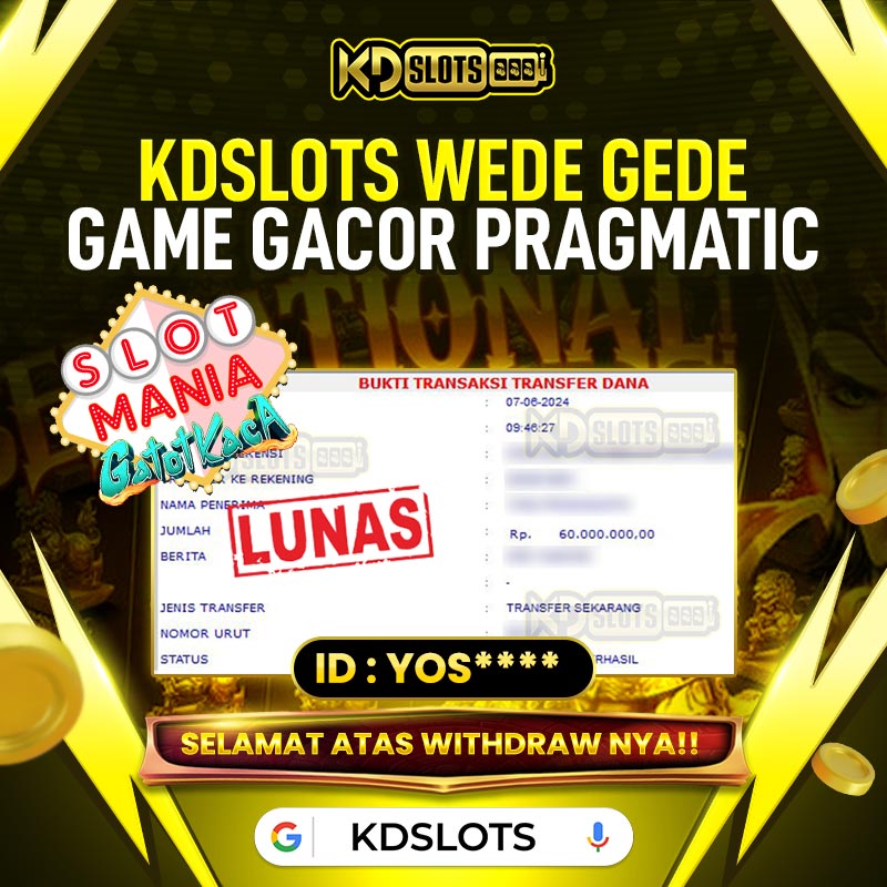 Selamat kepada member KDSLOTS SLOT MANIA GATOT KACA user ID YOS**** Telah berhasil mendapatkan kemenangan sebesar Rp 60.000.000 Setelah mengisi formulir withdraw dengan kurung waktu hanya 5 – 10 menit pihak KDslots sudah melakukan transfer kepada pemilik User ID dan dana sudah dapat di cairkan oleh pemenang. Bukti pembayaran yang kami berikan merupakan bukti pembayaran yang SAH / VALID yang langung di dapatkan melaui tanda transfer transaksi dari Bank yang dituju.