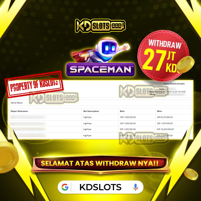 Selamat kepada member KDSLOTS Game Spaceman (Pragmatic LiveCasino) user id BOW**** Telah berhasil mendapatkan kemenangan sebesar Rp 27.000.000 Setelah mengisi formulir withdraw dengan kurung waktu hanya 5 – 10 menit pihak KDslots sudah melakukan transfer kepada pemilik User ID dan dana sudah dapat di cairkan oleh pemenang. Bukti pembayaran yang kami berikan merupakan bukti pembayaran yang SAH / VALID yang langung di dapatkan melalui tanda transfer transaksi dari Bank yang dituju.
