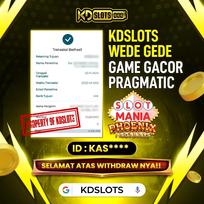 Selamat kepada member KDSLOTS SLOT MANIA PHOENIX MEGAWAYS Telah berhasil mendapatkan kemenangan sebesar Rp 10.200.000 Setelah mengisi formulir withdraw dengan kurung waktu hanya 5 – 10 menit pihak KDslots sudah melakukan transfer kepada pemilik User ID dan dana sudah dapat di cairkan oleh pemenang. Bukti pembayaran yang kami berikan merupakan bukti pembayaran yang SAH / VALID yang langung di dapatkan melaui tanda transfer transaksi dari Bank yang dituju.