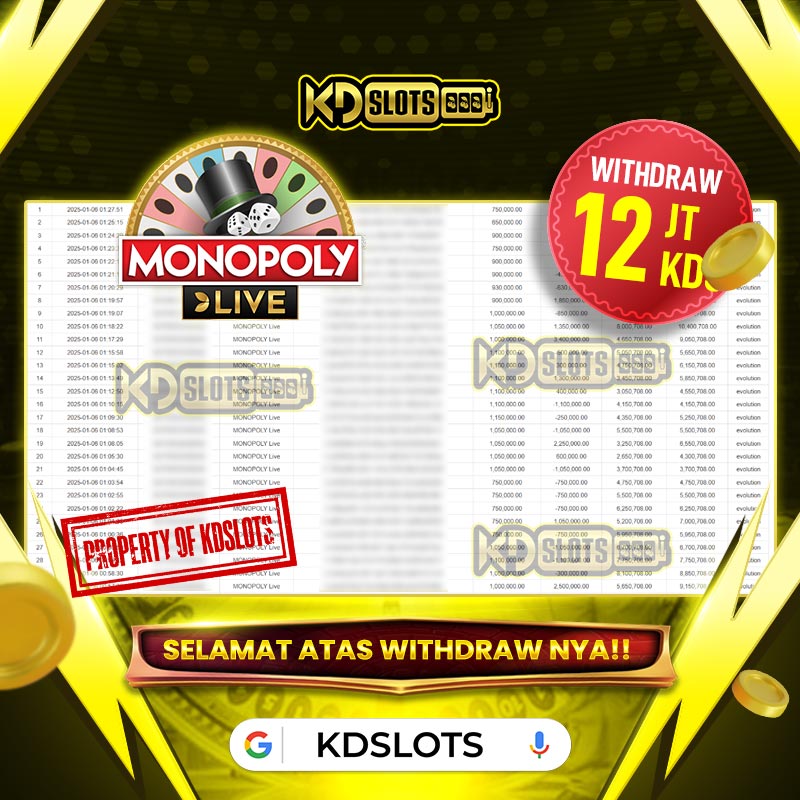 Selamat kepada member KDSLOTS MONOPOLY Live (Evolution Gaming) user id FEN**** Telah berhasil mendapatkan kemenangan sebesar Rp 12.000.000 Setelah mengisi formulir withdraw dengan kurung waktu hanya 5 – 10 menit pihak KDslots sudah melakukan transfer kepada pemilik User ID dan dana sudah dapat di cairkan oleh pemenang. Bukti pembayaran yang kami berikan merupakan bukti pembayaran yang SAH / VALID yang langsung di dapatkan melalui tanda transfer transaksi dari Bank yang dituju.