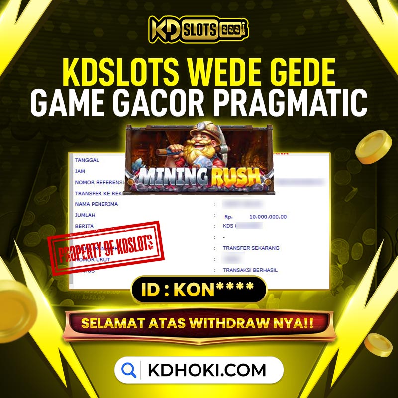 Selamat kepada member KDSLOTS game Game Mining Rush (PP) user id KON**** Telah berhasil mendapatkan kemenangan sebesar Rp 10.000.000 Setelah mengisi formulir withdraw dengan kurung waktu hanya 5 – 10 menit pihak KDslots sudah melakukan transfer kepada pemilik User ID dan dana sudah dapat di cairkan oleh pemenang. Bukti pembayaran yang kami berikan merupakan bukti pembayaran yang SAH / VALID yang langsung di dapatkan melalui tanda transfer transaksi dari Bank yang dituju