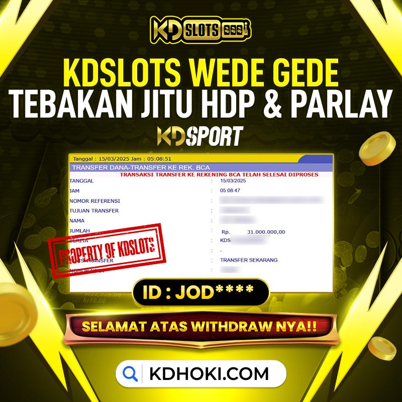 Selamat kepada member KDSLOTS HDP & PARLAY (UBO) user id JOD**** Telah berhasil mendapatkan kemenangan sebesar Rp 31.000.000 Setelah mengisi formulir withdraw dengan kurung waktu hanya 5 – 10 menit pihak KDslots sudah melakukan transfer kepada pemilik User ID dan dana sudah dapat di cairkan oleh pemenang. Bukti pembayaran yang kami berikan merupakan bukti pembayaran yang SAH / VALID yang langsung di dapatkan melalui tanda transfer transaksi dari Bank yang dituju