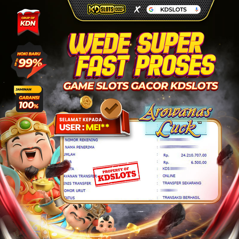 Selamat kepada member KDslots di Game Arowanas Luck (Playtech) id MEI*Β Telah berhasil mendapatkan kemenangan sebesar Rp 24.210.707 Setelah mengisi formulir withdraw dengan kurang waktu hanya 3 β 5 menit pihak KDslots sudah melakukan transfer kepada pemilik User ID dan dana sudah dapat di cairkan oleh pemenang. Bukti pembayaran yang kami berikan merupakan bukti pembayaran yang SAH / VALID yang langsung di dapatkan melalui tanda transfer transaksi dari Bank yang dituju