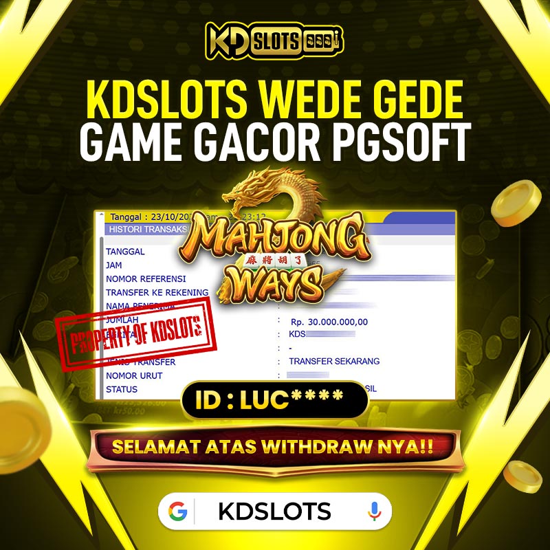 Selamat kepada member KDslots Mahjong Ways (pgs) id LUC***** Telah berhasil mendapatkan kemenangan sebesar Rp 30.000.000 Setelah mengisi formulir withdraw dengan kurang waktu hanya 3 – 5 menit pihak KDslots sudah melakukan transfer kepada pemilik User ID dan dana sudah dapat di cairkan oleh pemenang. Bukti pembayaran yang kami berikan merupakan bukti pembayaran yang SAH / VALID yang langsung di dapatkan melalui tanda transfer transaksi dari Bank yang dituju