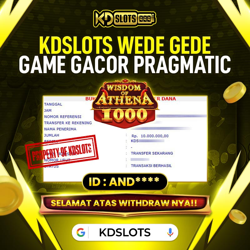 Selamat kepada member KDslots Game Wisdom of Athena 1000 (PP) id AND***** Telah berhasil mendapatkan kemenangan sebesar Rp 10.000.000 Setelah mengisi formulir withdraw dengan kurang waktu hanya 3 – 5 menit pihak KDslots sudah melakukan transfer kepada pemilik User ID dan dana sudah dapat di cairkan oleh pemenang. Bukti pembayaran yang kami berikan merupakan bukti pembayaran yang SAH / VALID yang langsung di dapatkan melalui tanda transfer transaksi dari Bank yang dituju